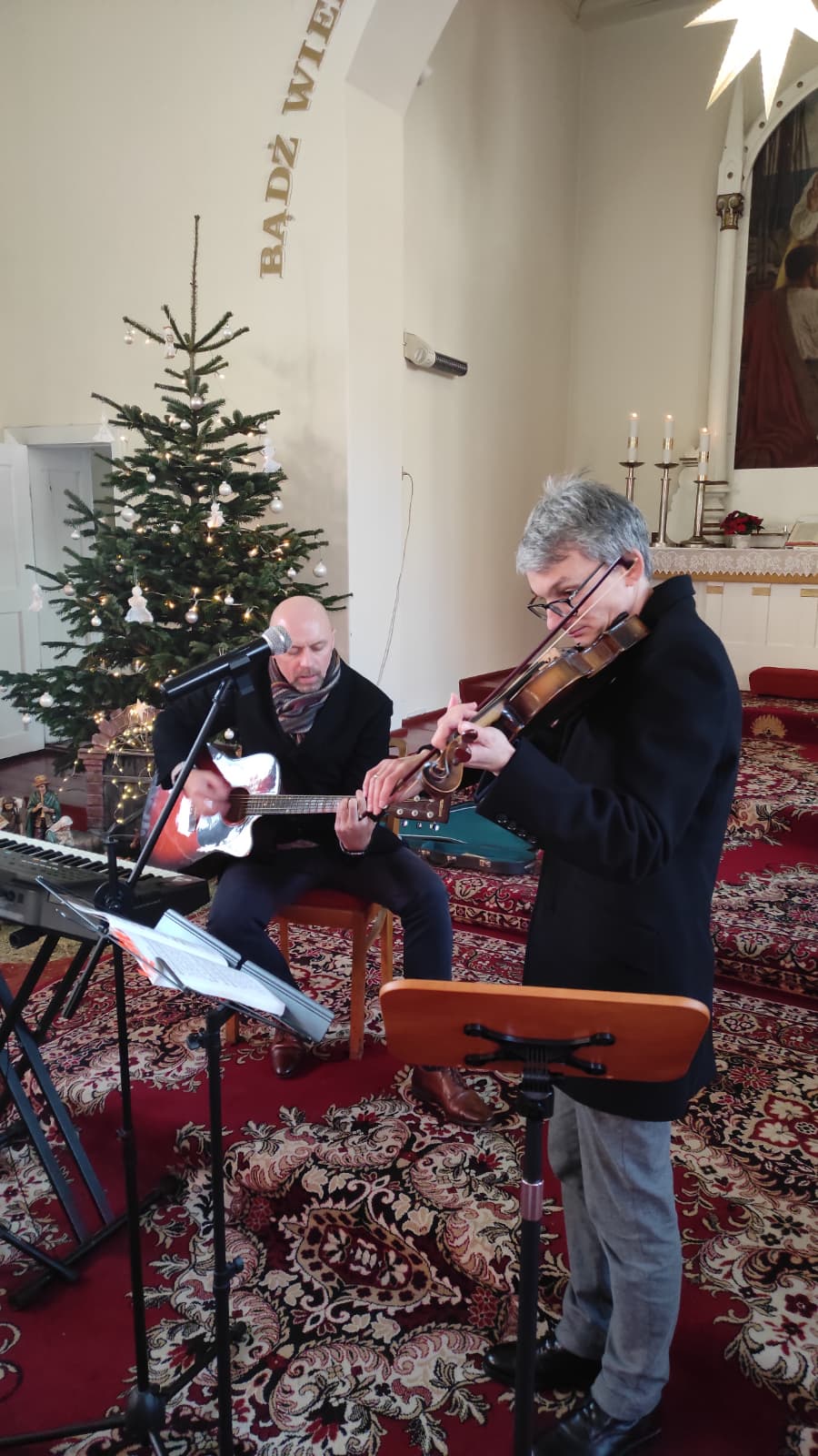 Staje się już tradycją, że w Święto Epifanii parafianie z Grudziądza, Torunia i Bydgoszczy spotykają się na kolędowaniu. W tym roku udaliśmy się do Kościoła Św. Jana w Grudziądzu, gdzie w miłej atmosferze spędziliśmy wspólnie czas. Do śpiewu akompaniował duet: na skrzypcach proboszcz miejsca ks. Karol Niedoba, na keyboardzie i gitarze nasz kantor Jakub Kwintal. Dziękujemy wspólnocie grudziądzkiej za gościnność i pyszności! A na koniec z ust ks. Michała Walukiewicza padło zaproszenie na kolejny rok, do Torunia.