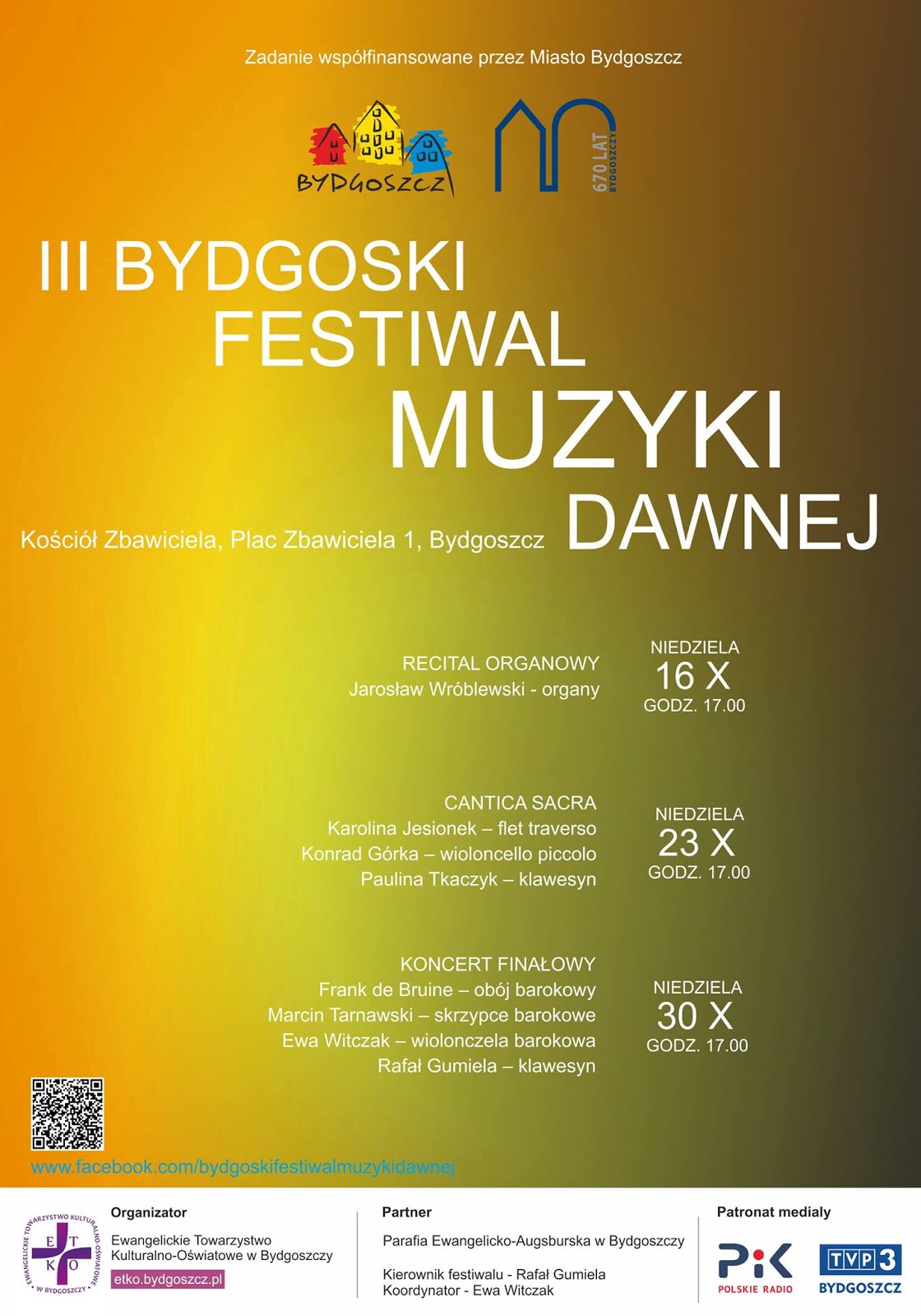 Zapraszamy na III Bydgoski Festiwal Muzyki Dawnej. Szczegóły na stronie internetowej Ewangelickiego Towarzystwa Kulturalno-Oświatowego w Bydgoszczy: tutaj.